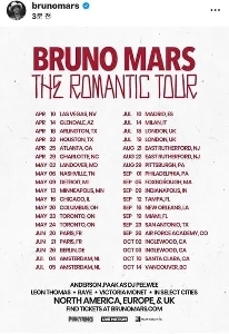 ブルーノ・マーズのニューアルバムツアーリスト