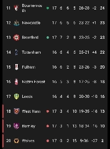 EPL現在のランキングㄷㄷㄷ