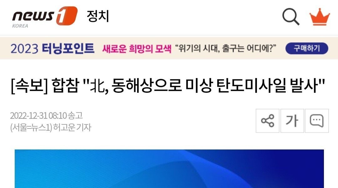 速報合同参謀、北朝鮮東海上で未詳弾道ミサイル発射