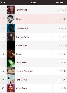 最近のKPOP世界音楽収益ランキング