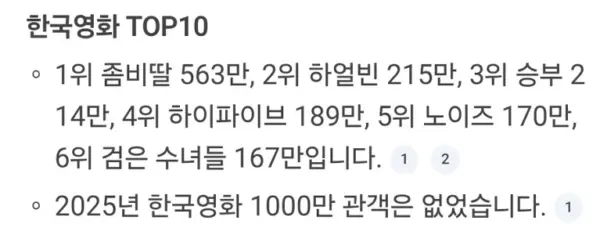 2025年の韓国映画観客トップ5