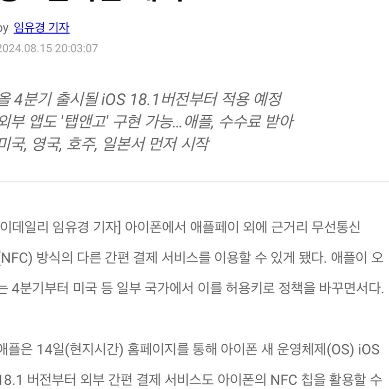 ソ・ジヨンサンミョン大学経営学部教授は、「「カード会社がアップルペイを導入する場合、サムスン電子の立場では危機感を感じるしかない」とし、「サムスン電子はこれまで手数料を受けられたが、カード会社から手数料を受けるアップルペイが国内市場で広がった場合、手数料無料政策を廃棄する可能性が高い」と分析した。