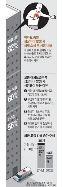 アパートの階ごとの心停止における心肺蘇生後の死亡率