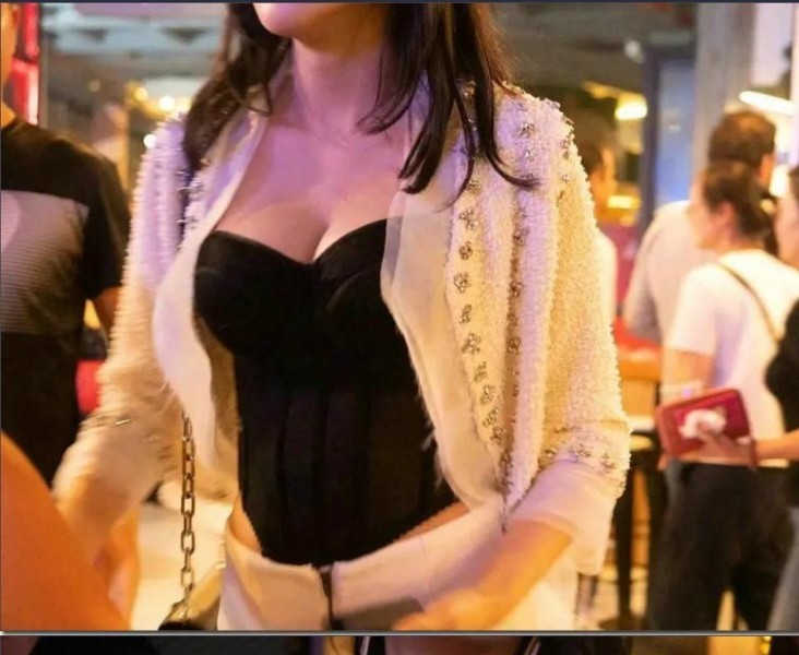 横から見た黒ひもホルターネックノースリーブの濃い胸のラインTWICEジヒョ