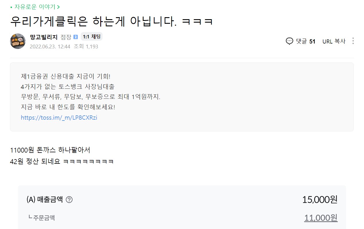 ●11000ウォンとんかつを売って42ウォン稼いだ店の社長