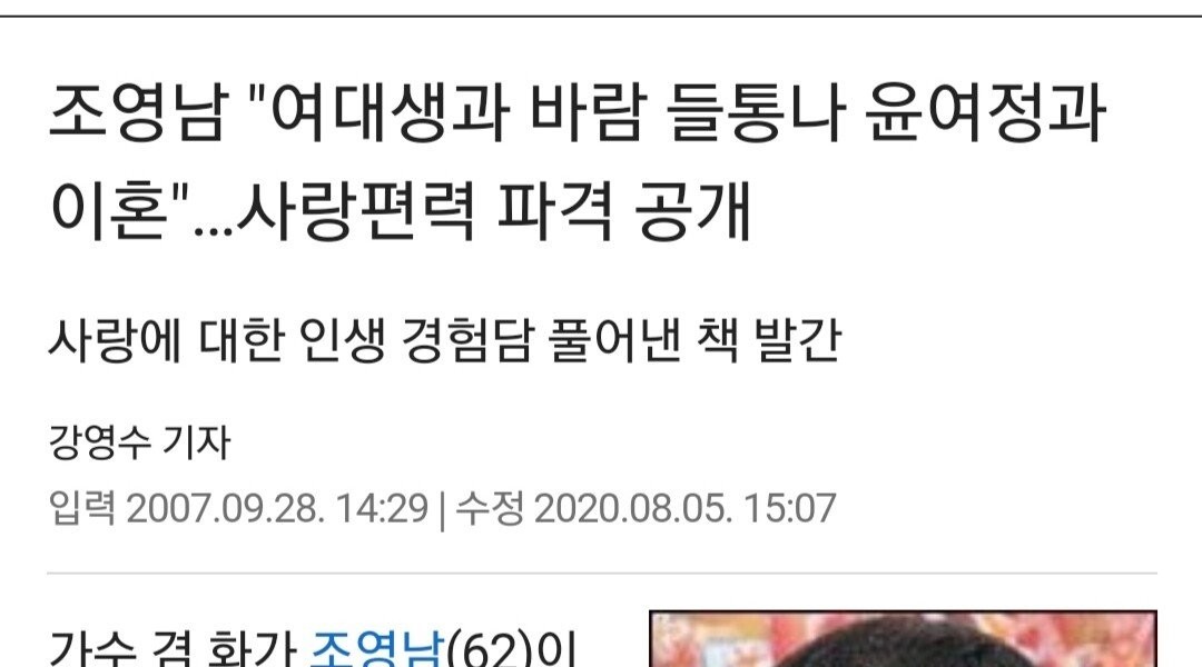 チョ·ヨンナム女子大生と浮気をしてユン·ヨジョンと離婚···愛遍歴破格公開