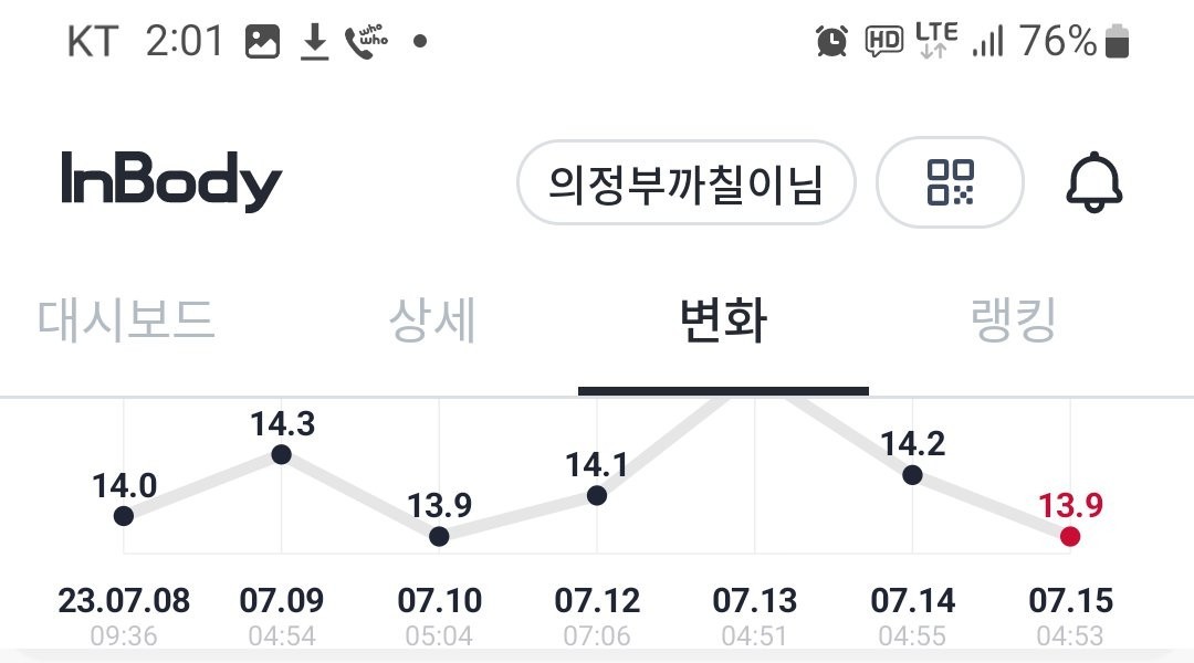最近のインボディメーターレベルの近況ㅎㄷㄷㄷㄷ
