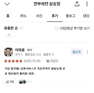 関武チキン三星店の口コミを投稿したイ・ジェヨンさん