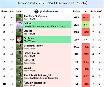 カデハン・ゴールデン、来週のビルボード・チャートで2位に復帰