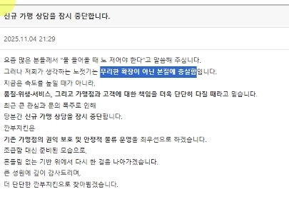 関武)関武チキンのフランチャイズ相談を一時停止