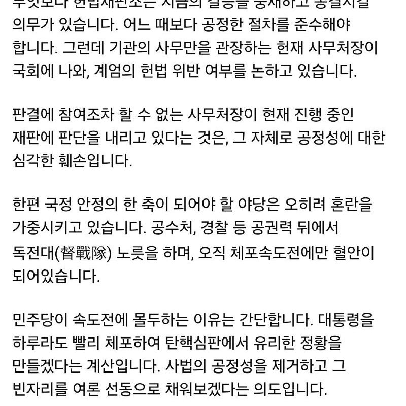 [速報]クォン・ソンドン””””民主党戒厳特検法通過すればどんなことが起こるかよく分かるだろう…毒が入った杯飲む心情”””