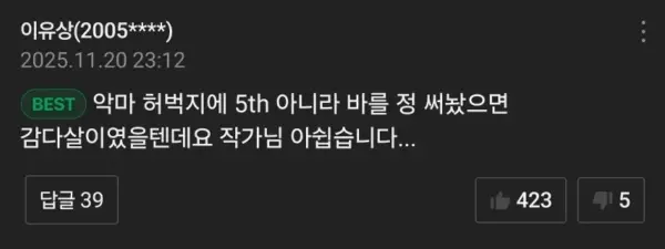 NAVERウェブトゥーン史上最も名誉あるコメント