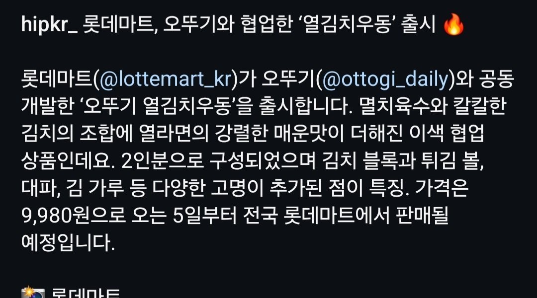 ロッテマートがオトギとコラボレーションした「10キムチうどん」を発売