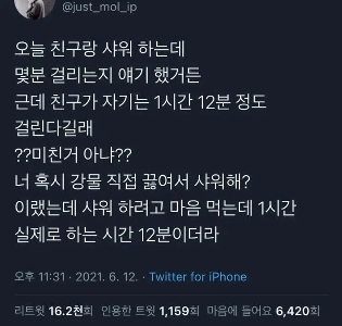 シャワー時間の1時間12分の友達