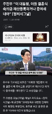 チュ・ジヌ「李大統領は息子の結婚祝いを財産登録するか贈与税を支払わなければならない」 [政治信号]