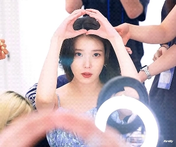 みかんのハートが頭上に浮かぶストリングドレスを着たIUのさわやかな脇の下