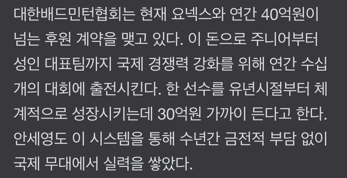 “”””個人的なスポンサーを許可する””””アン・セヨンのバドミントン協会「暖色」
