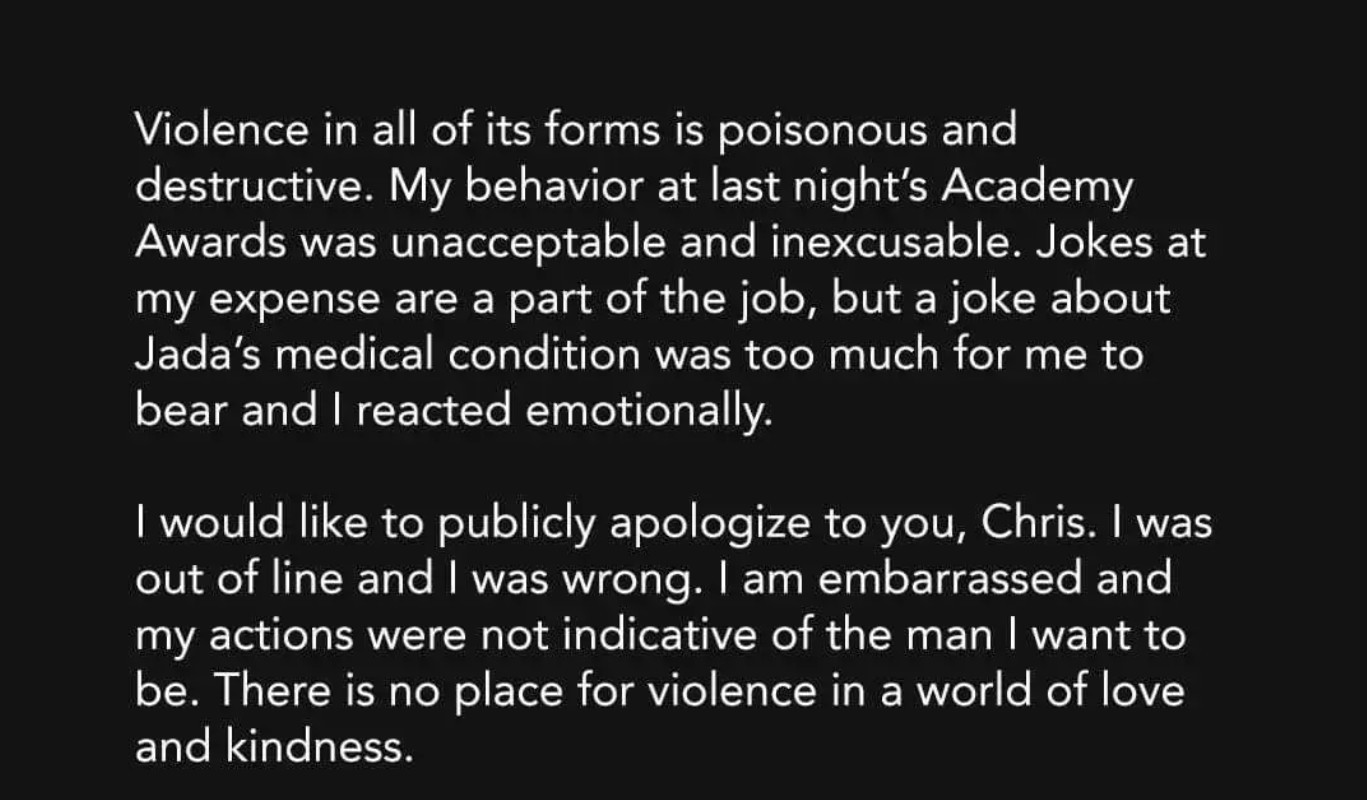 ウィル·スミス謝罪文insta