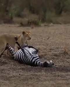 (SOUND)嫌い)シマウマを噛むライオン