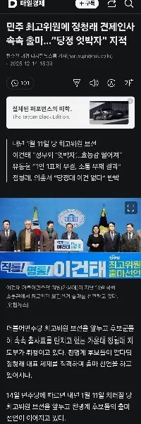 最高民主党の鄭清来議員が相次ぎ立候補…「党と政府の不一致」と指摘