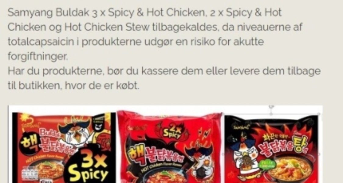 デンマーク政府核火鶏炒め麺リコール発表