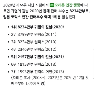 鬼滅の刃は日本の漫画の人気トップのようです。