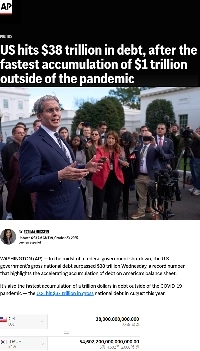 米国の債務が38兆ドルを超える
