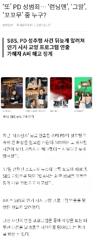 SBS時事番組PD、性的違法行為で解雇.news