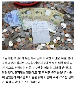 日本人旅行者が旅行中に募金箱に110万ウォンを入れたニュース