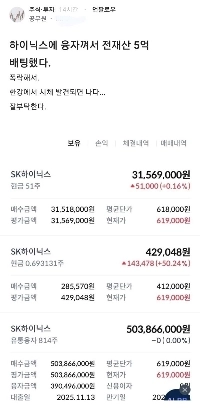 昨日ハイニックスに5億ウォンを賭けた英雄.jpg