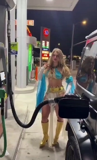 ガソリンスタンドで出会ったクレイジー肉体派ハロウィンエルフコスプレ娘。