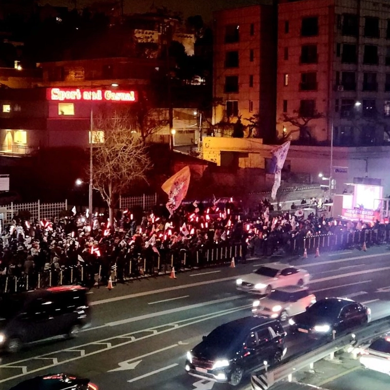現在、漢南洞の官邸に向かう5万逮捕団