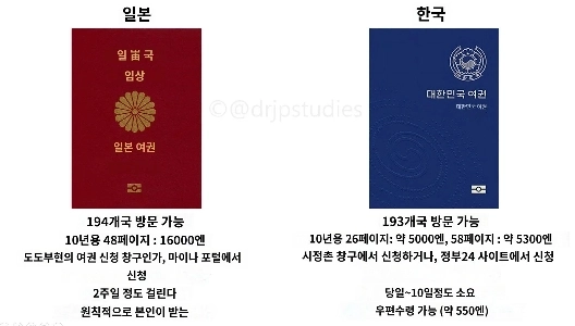 韓国 – 日本のパスポートの比較