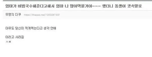 お母さんがビビン麺を作ってと言ったから、たくさん食べます。