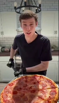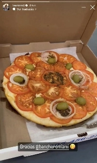 ビジュアルで知られるメッシが食べたピザの写真.jpg