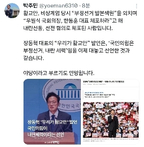 パク・ジュミン議員は「ファン・ギョアン氏を全力で支援するというチャン・ドンヒョク議員の発言は、