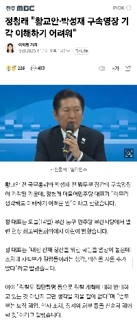 チョン・チョンレ「」「ファン・ギョアンとパク・ソンジェの逮捕状却下は理解に苦しむ」「」