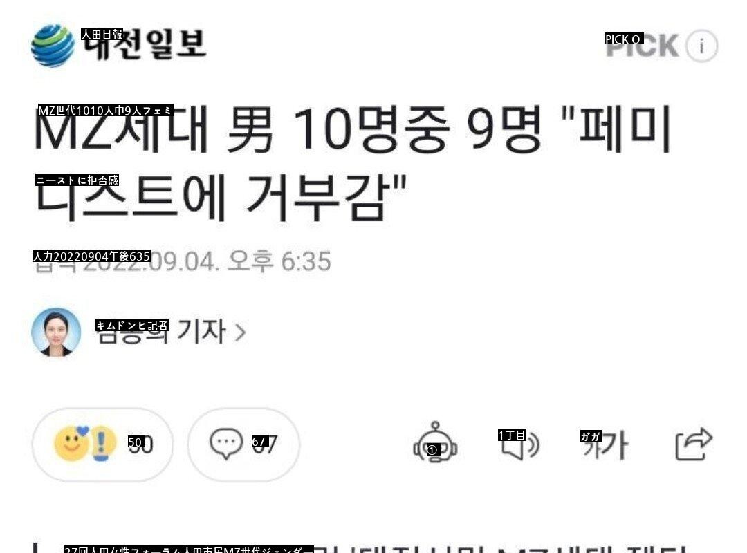 ●MZ世代、10人中9人がフェミニストに拒否感