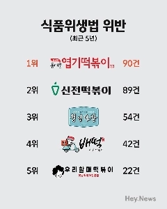 Tteokbokkiフランチャイズの衛生違反トップ5