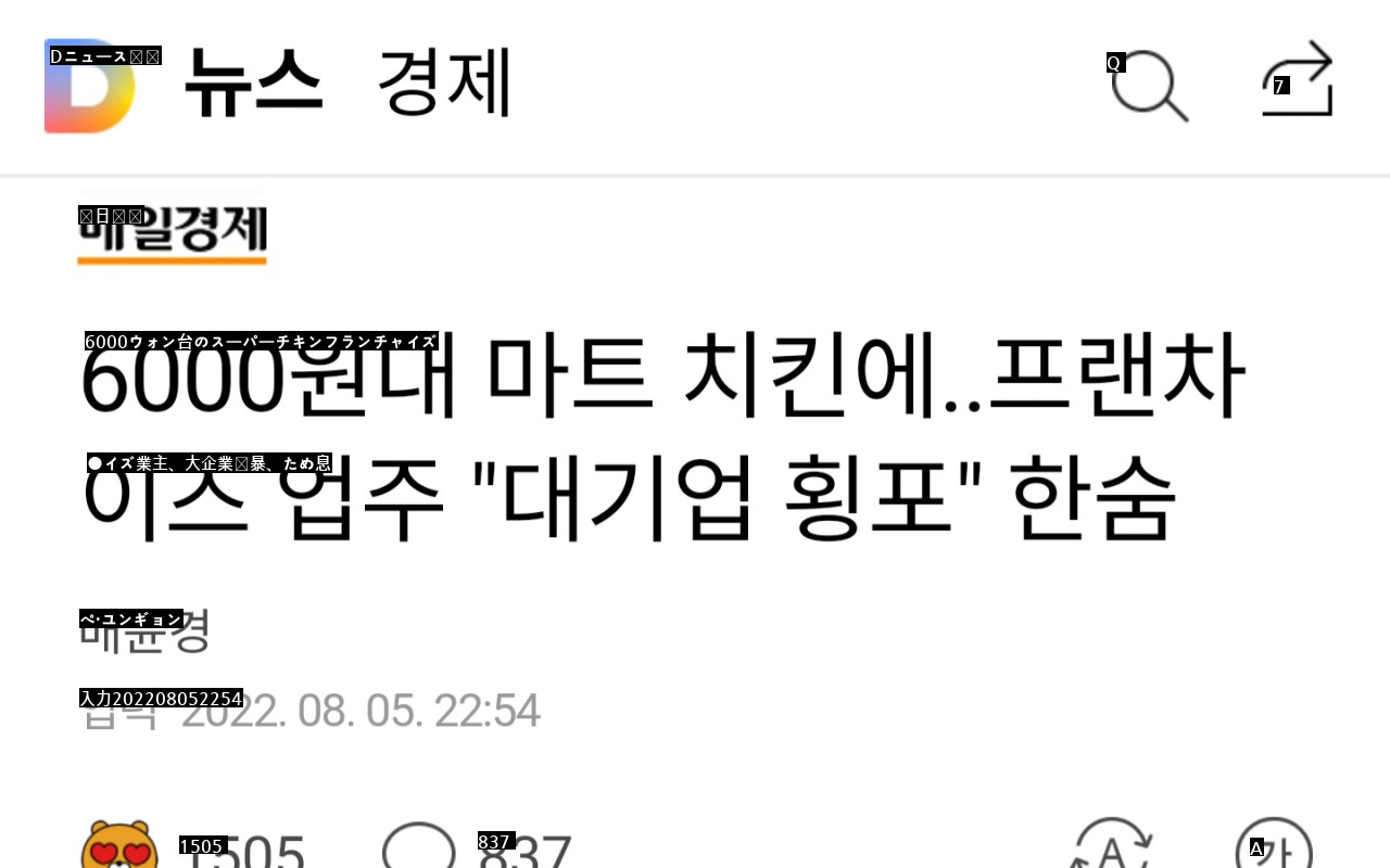 ●6000ウォン台のスーパー、チキンフランチャイズ事業主、大企業横暴、ため息