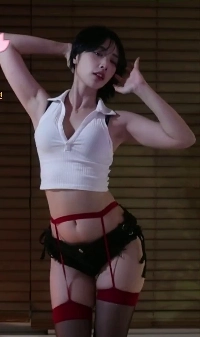 (SOUND)モデルイ・ダヨン黒紐タンクトップ谷間ホットパンツ