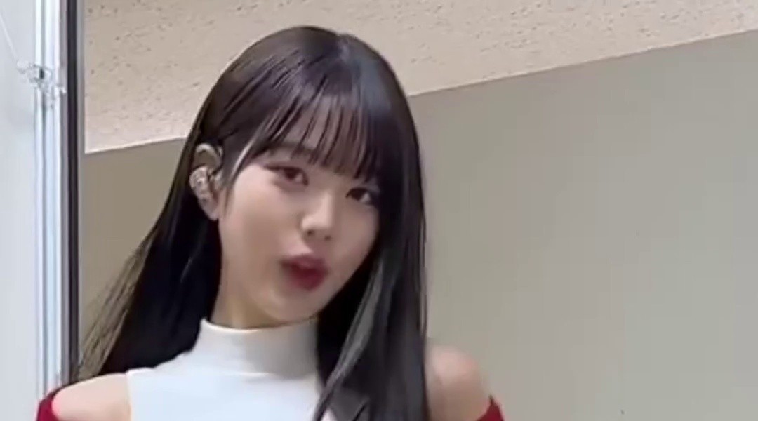 (SOUND)白いタートルネック 赤いリブ クロップTシャツ くびれた腰 アイブ チャン·ウォニョン