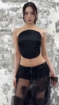 Itzy Yuna セクシーな脇の下と腹部を備えた黒のシースルー ローライズ