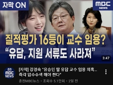 ユ・スンミンの娘ユ・ダムと他の教授候補との比較