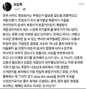 保守評論家のチョ・ガプジェ氏、慶州APECを評価「極右はゴキブリだ」