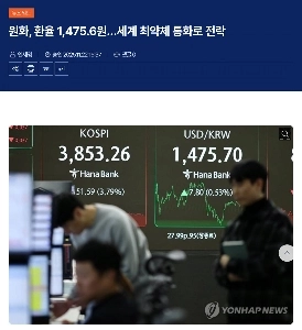 ウォン、為替レート1,475.6ウォン…世界で最も弱い通貨に転落