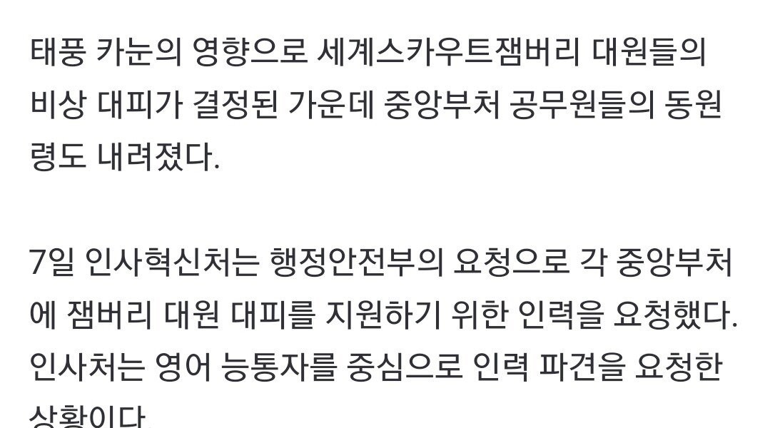 韓首相「ジャンボリー、今から中央政府が引き受ける」