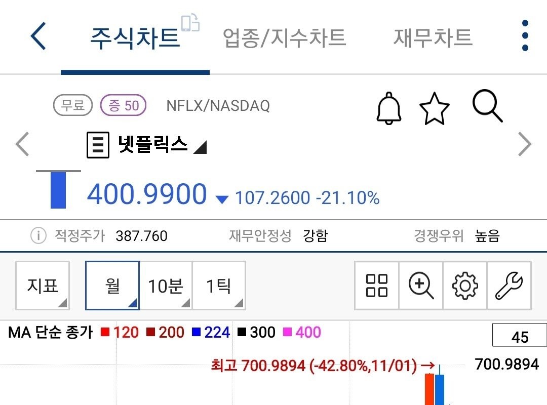 ネットフリックスの株価状況