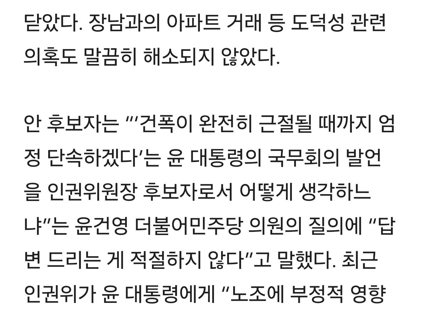 挨拶のないアン・チャンホ、ユン大統領の人権侵害の質問には「回答困難」