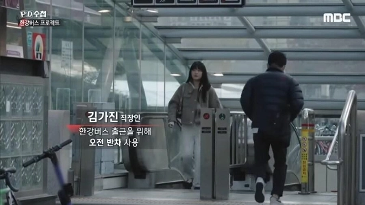 漢江バスに乗って通勤する会社員キムさん